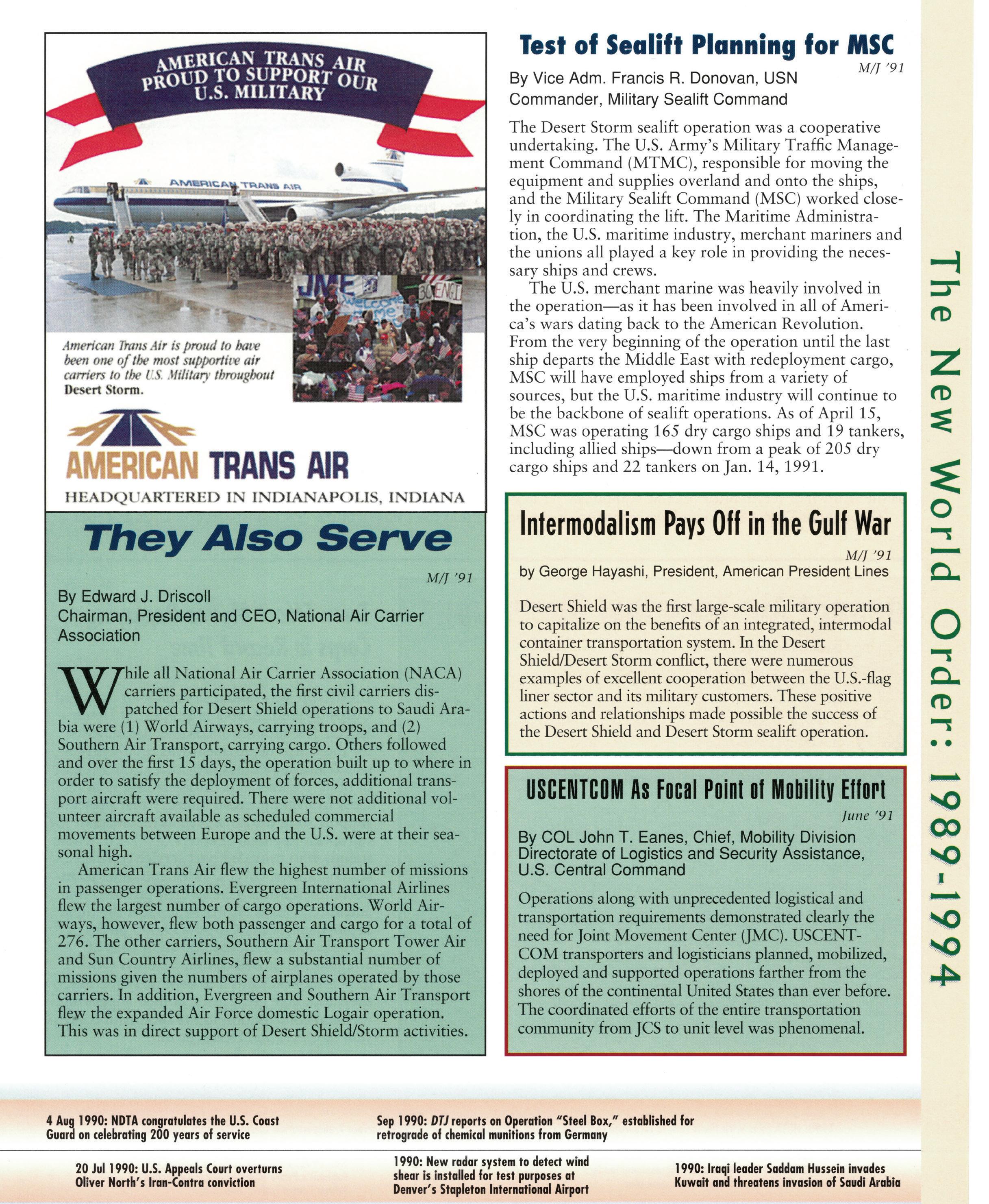 NDTA is indispensable. As an educational non-profit that does not engage in lobbying, it is a neutral and trusted agent for all Americans concerned with our nation’s ability to project power and sustain readiness. I have been privileged to be a member of NDTA since I entered the U.S.-flag maritime industry in 2003. During that time, American Roll-On Roll-Off Carrier and other U.S.-flag carriers enrolled in the Maritime Security Program (MSP) and Voluntary Intermodal Sealift Agreement (VISA) have worked hand-in-hand with USTRANSCOM leaders from Gen (Ret.) John Handy, the longest-serving USTRANSCOM commander, to the present day under GEN Steve Lyons, the first Army CG, on such complex issues as the massive OIF deployment, the push to get life-saving Up-Armored HMMWVs and MRAPs/M-ATVs to theater, the surges in Iraq and Afghanistan, the closure of the PAK GLOC and foundation of the NDN, the pioneering of sea-air multimodal options, and Atlantic Resolve exercises and rotations in Europe. ...