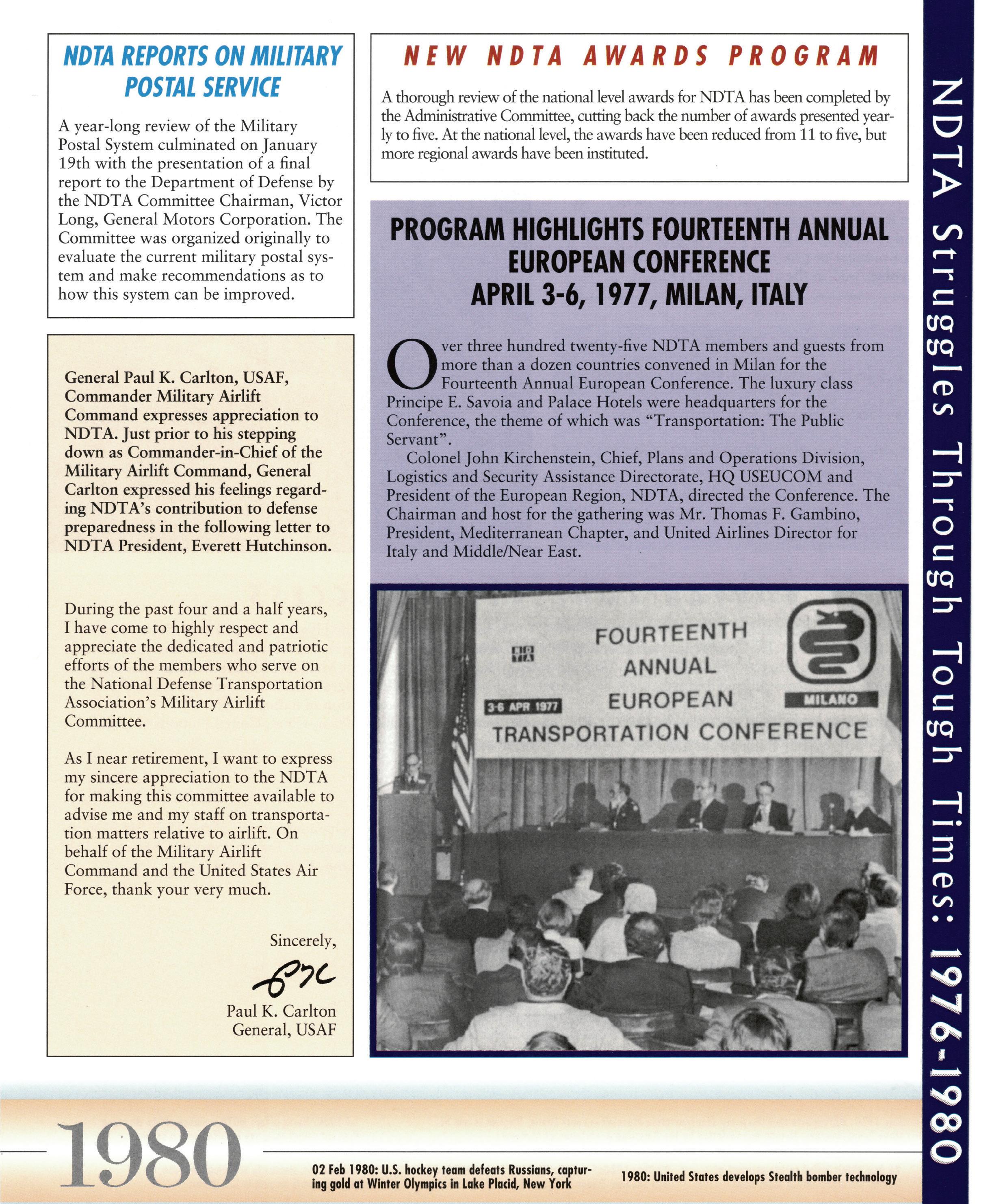 TRANSCOM between 2008-2011, I absolutely depended on NDTA to help us build a true partnership between USTRANSCOM and its components, AMC, SDDC, and MSC, and our USflag air, land, and sea carriers to support global operations and disaster relief, including operations into and out of Iraq and Afghanistan. No surprise, our transportation enterprise performed magnificently. It indeed gives our Nation’s military one of its greatest asymmetric advantages...the strategic ability to move. There is no better relationship in all DOD between our military and industry...and thank you NDTA for helping make it so. NDTA also led to many wonderful life time friendships and some great, great fun. Huge congratulations on your 75th Anniversary. ...