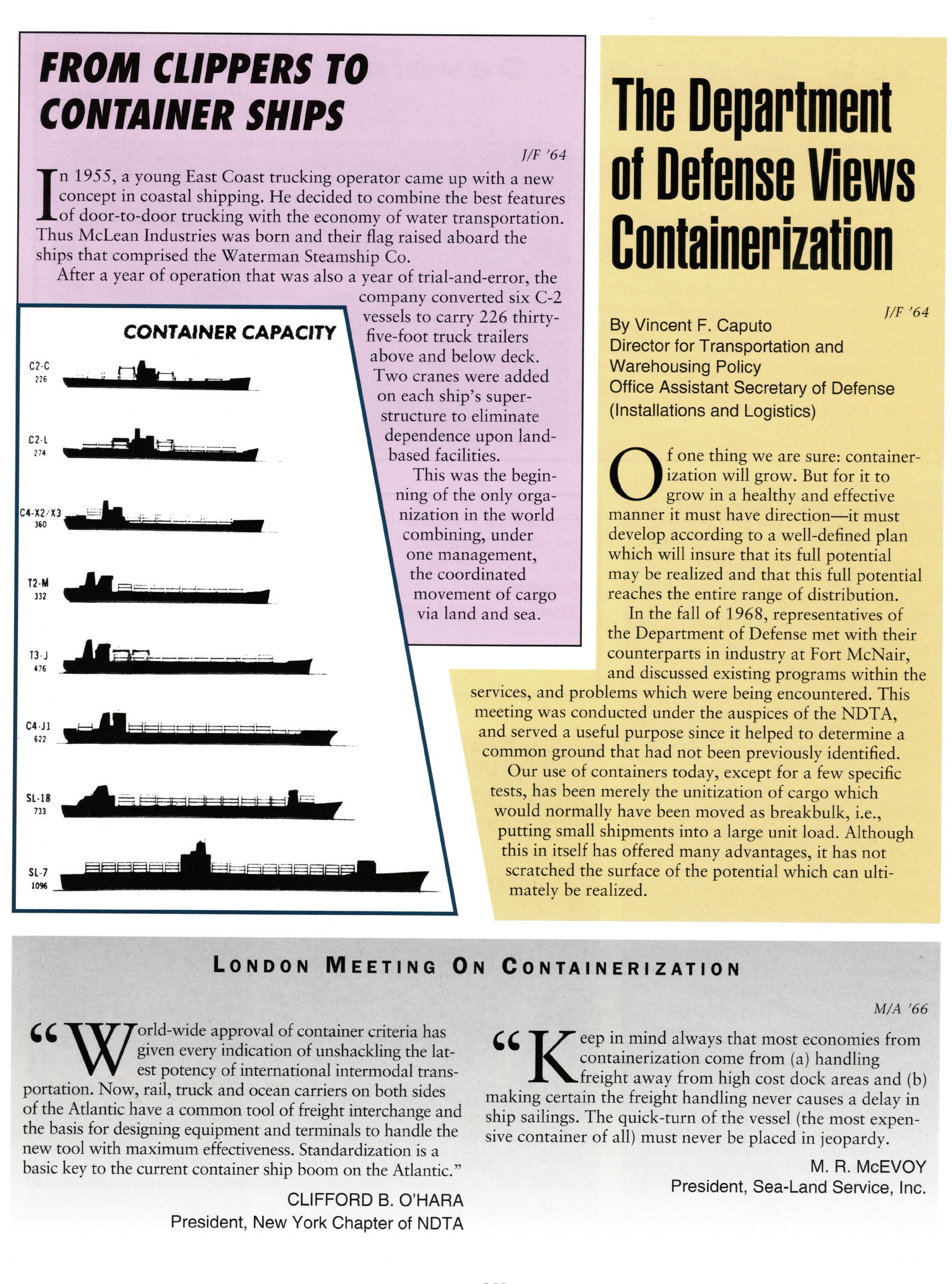 The last issue of the DTJ included an article “The Case for Containers,” that built a case for modifying the current Household Goods (HHG) program to allow Portable Moving Storage Container (PMSC) companies an opportunity to bid on a specially selected segment of the domestic HHG market. In response, this article will show how PMSC companies are already able to compete, fully and completely, without any special structure designed for the PMSC, and without any additional programming costs to the government. Furthermore, it will document why the current program is a success and fosters market competition based on quality service.
