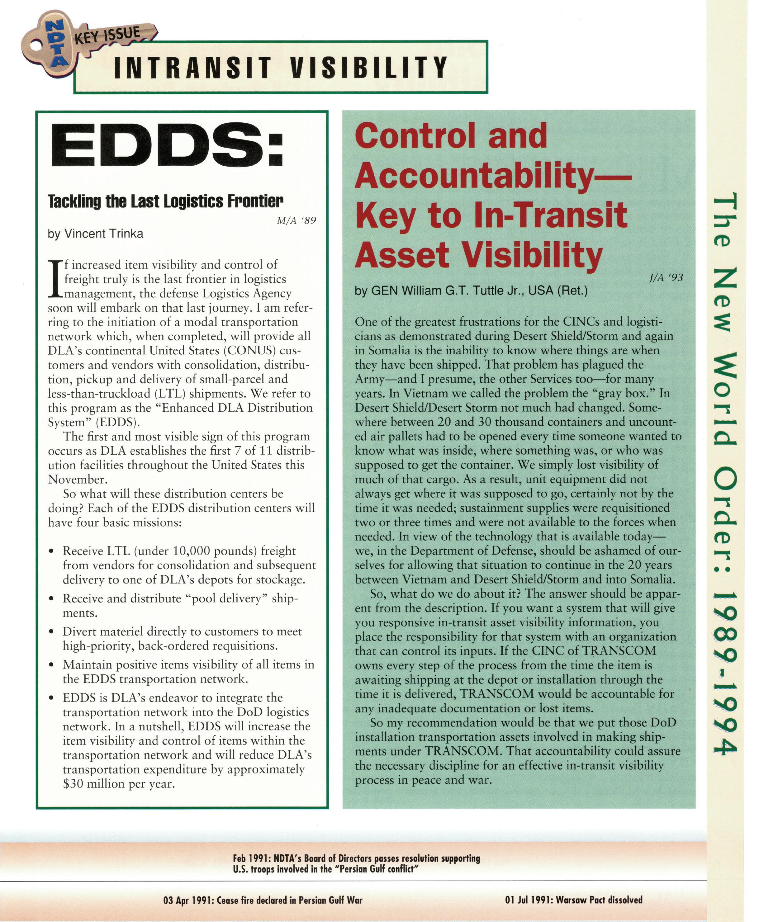 My association with NDTA is rather unique. I had limited interaction with the logistics/transportation community during my 27 years of service as an Army officer and no interaction