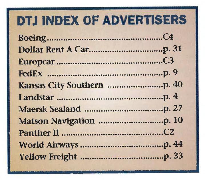Defense Transportation Journal (ISSN 0011-7625) is published bimonthly by the National Defense Transportation Association, a non-profit research and educational organization; NDTA, SO South Pickett Street, Suite 220, Alexandria, VA 22304-7296, (703) 751-5011. Copyright by NDTA. Periodicals postage paid at Alexandria, VA, and at additional mailing offices.