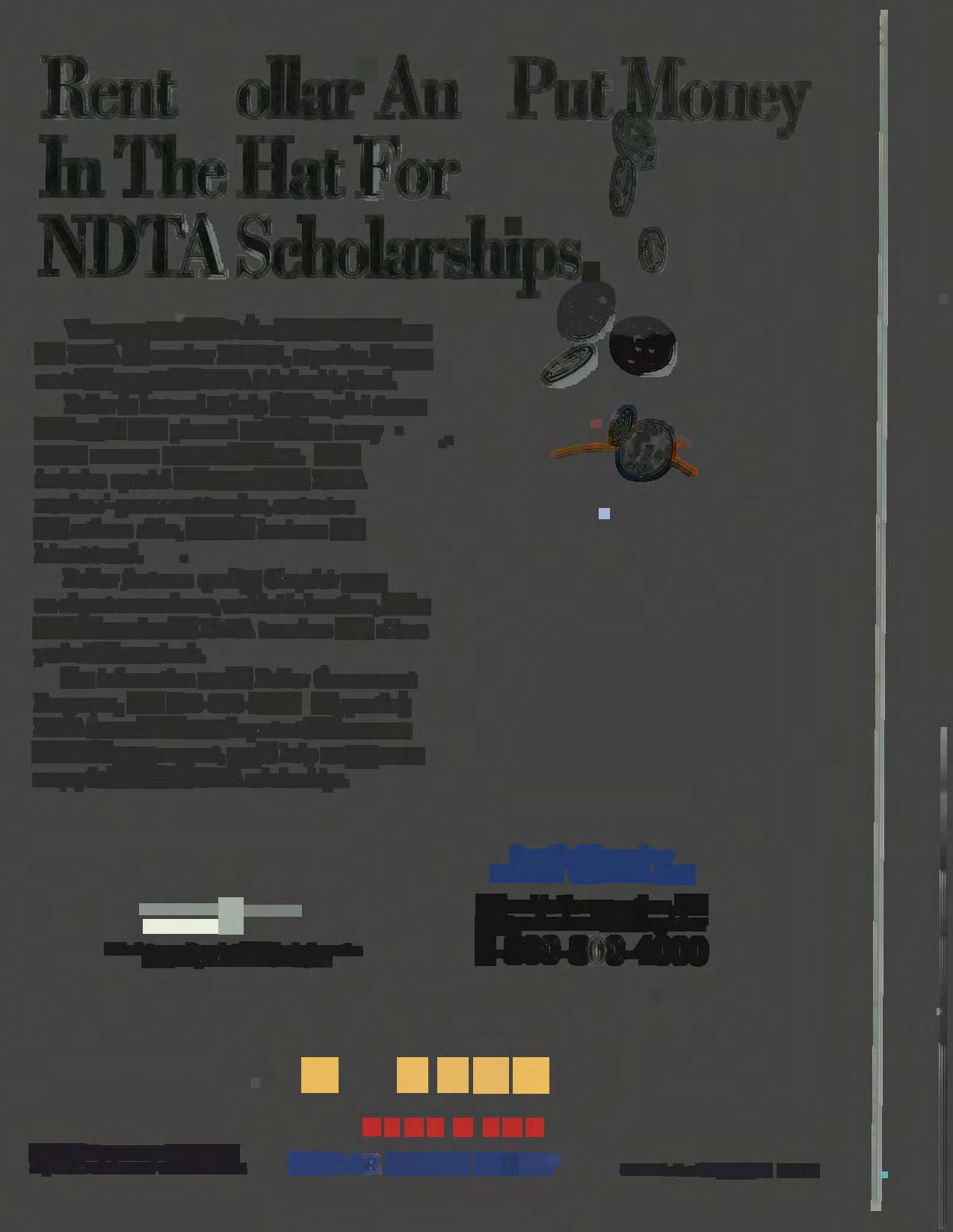 Last year, we awarded $18,000 in merit scholarships to deserving students. It is time to start working on scholarship applications for the '97-'98 school yearthey must be submitted by mid-April. High school students who are dependents of NDTA members are also eligible to apply. Scholarship applications are in the Awards Program Handbook-all NDTA chapter presidents have copies. Ifyou cannot locate one, call or write Norbert Grabowski at National headquarters.