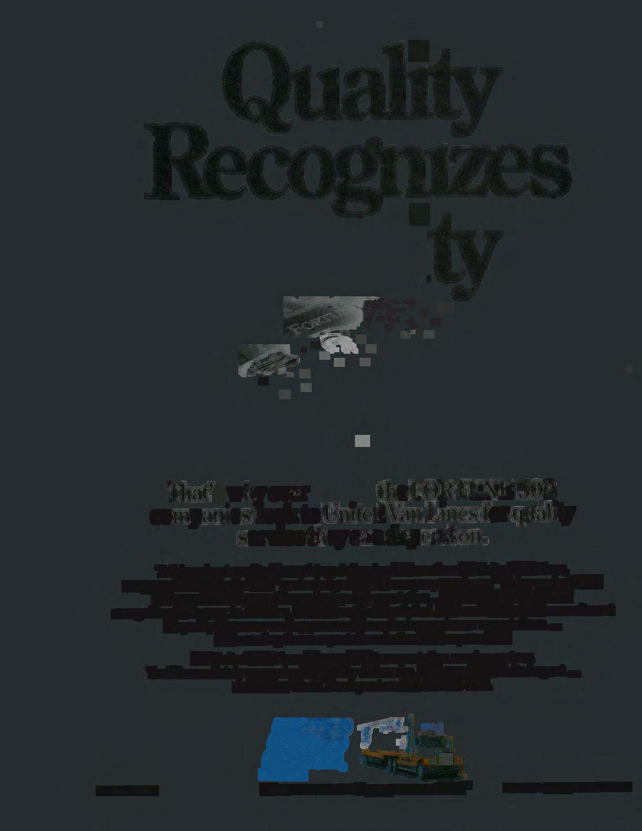 Talking about quality is one thing; delivering it is another. At United Van Lines, we agree with the belief that "you 're judged by the company you keep." We've worked hard for more than 40 years to earn our quality reputation and to gain the trust and recognition of Corporate America. But we're still not satisfied. We know that a true commitment to quality is a never-ending process of monitoring customer expectations... and meeting those expectations better than anyone else.
