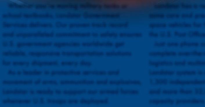Landstar Government Services delivers freedom from worrying about your most demanding transportation and logistics needs.
