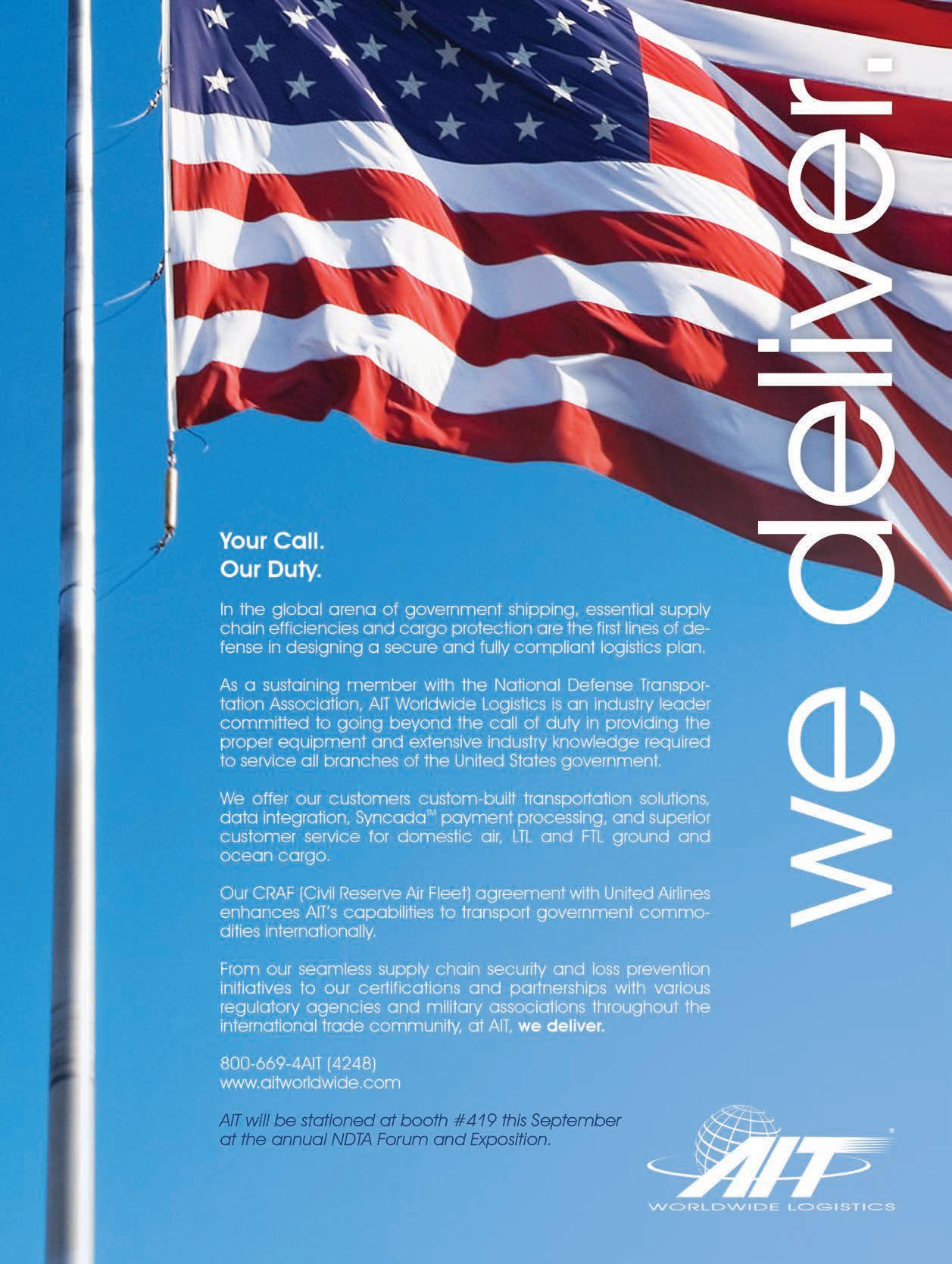 Defense Transportation Journal (Issn 0011-7625) is published bimonthly by the national Defense Transportation association (nDTa), a non-profit research and educational organization; 50 south Pickett street, suite 220, alexandria, va 22304-7296, 703-751-5011. Copyright by nDTa Periodicals postage paid at alexandria, virginia, and at additional mailing offices.