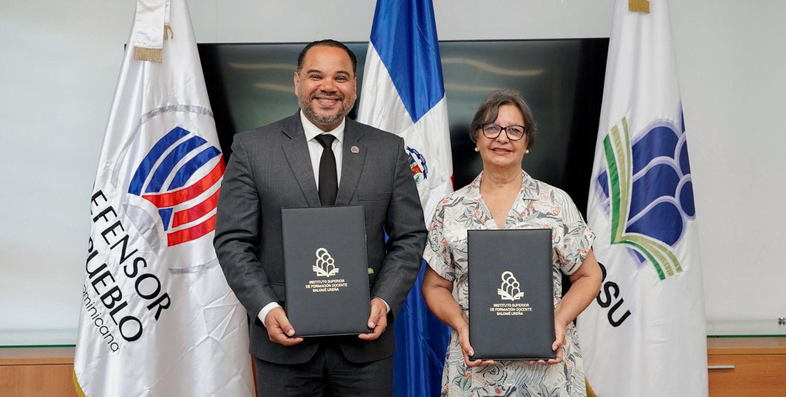 Con el objetivo de desarrollar iniciativas que fortalezcan la educación, la promoción de los derechos fundamentales y el bienestar de la población, el Defensor del Pueblo, Pablo Ulloa, y la rectora del Instituto Superior de Formación Docente Salomé Ureña (ISFODOSU), Nury del Carmen González Durán, suscribieron un acuerdo de colaboración interinstitucional.
