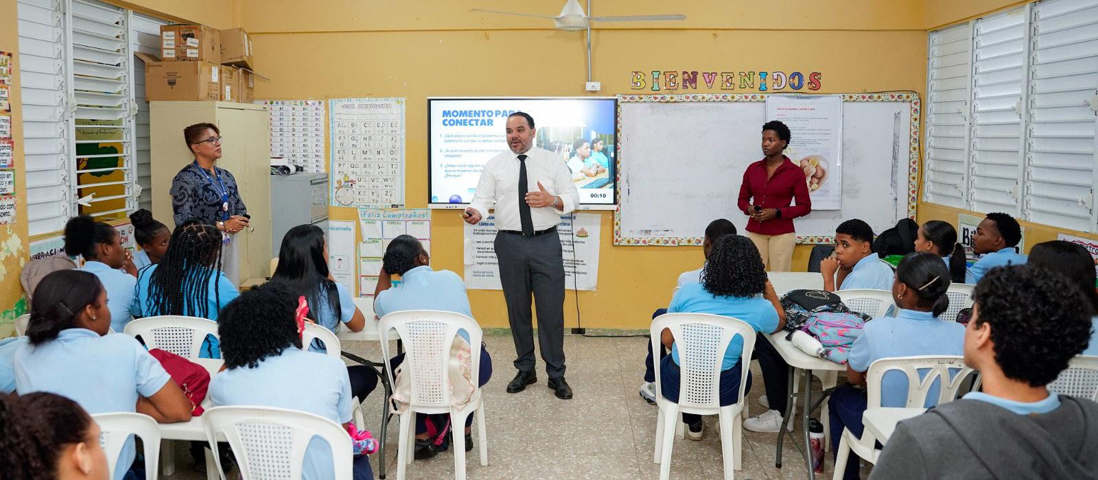 Durante la clase número 16 de Constitución para Todos y Todas, estudiantes del Centro Educativo Anibal Ponce, en el Distrito Nacional, conocieron el rol y las funciones del Defensor del Pueblo como garante de los derechos fundamentales ante las actuaciones del Estado.