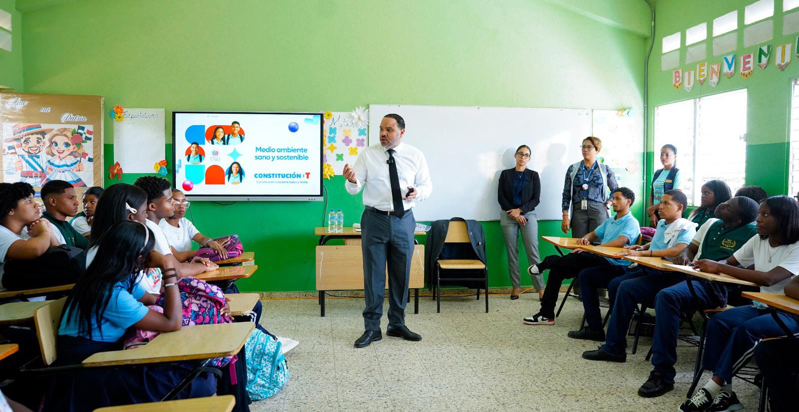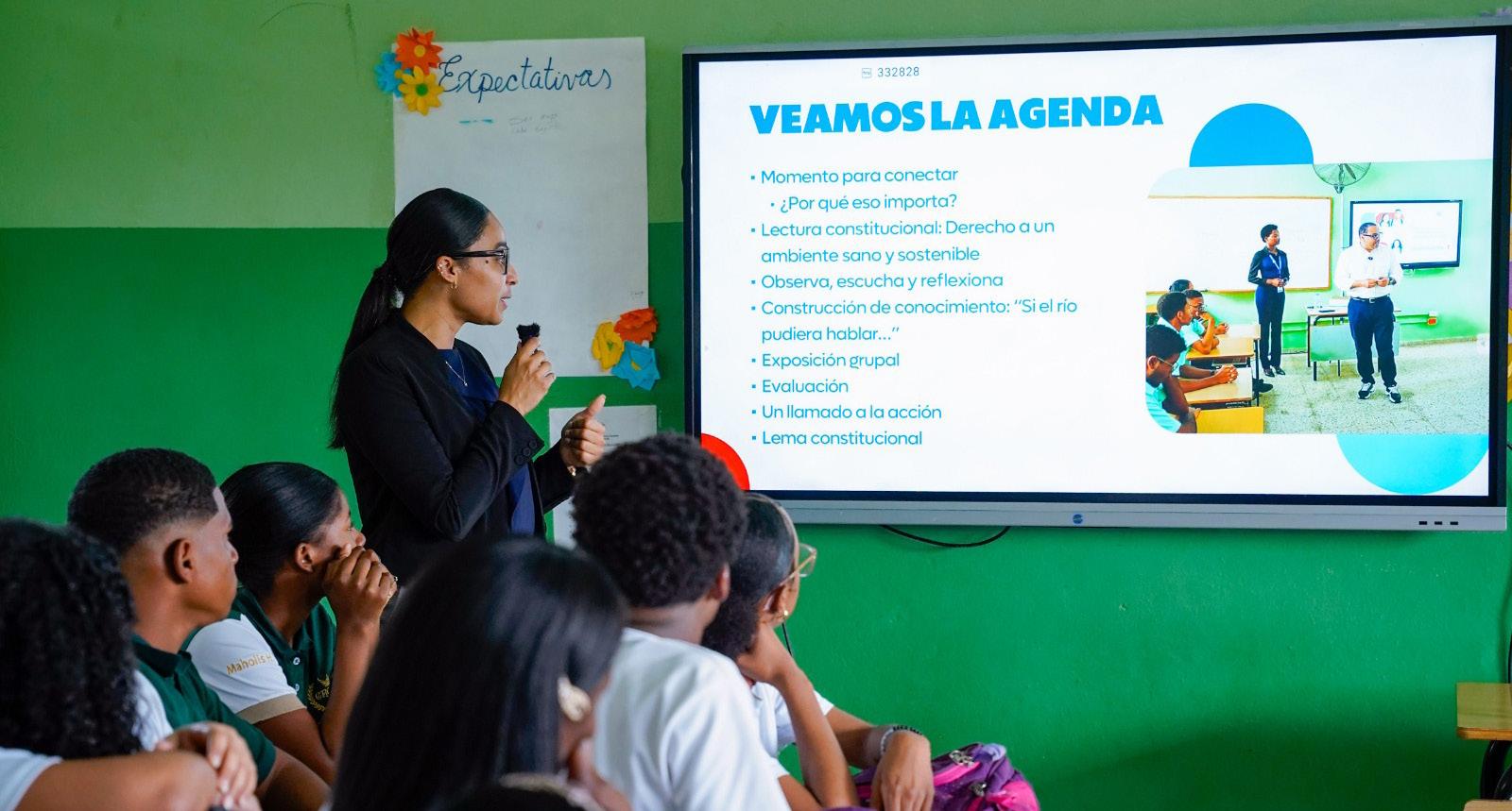 En la Clase 25 del programa Constitución Viva para Todos y Todas, estudiantes del Centro Educativo Marino Moreno González, en el distrito municipal La Guáyiga, provincia Santo Domingo, reflexionaron sobre el derecho a un medio ambiente sano y nuestra responsabilidad de proteger la naturaleza.