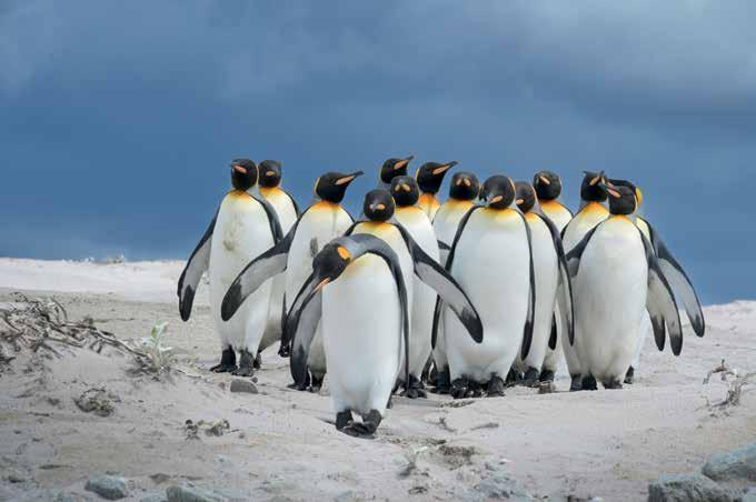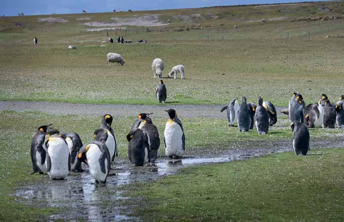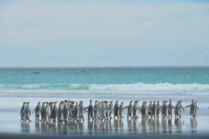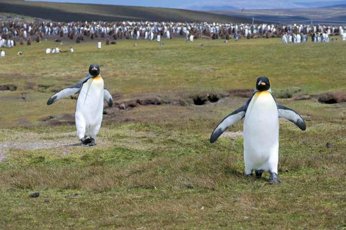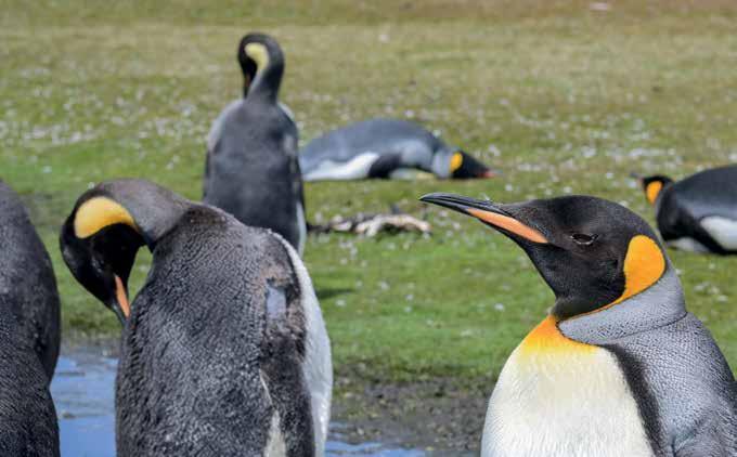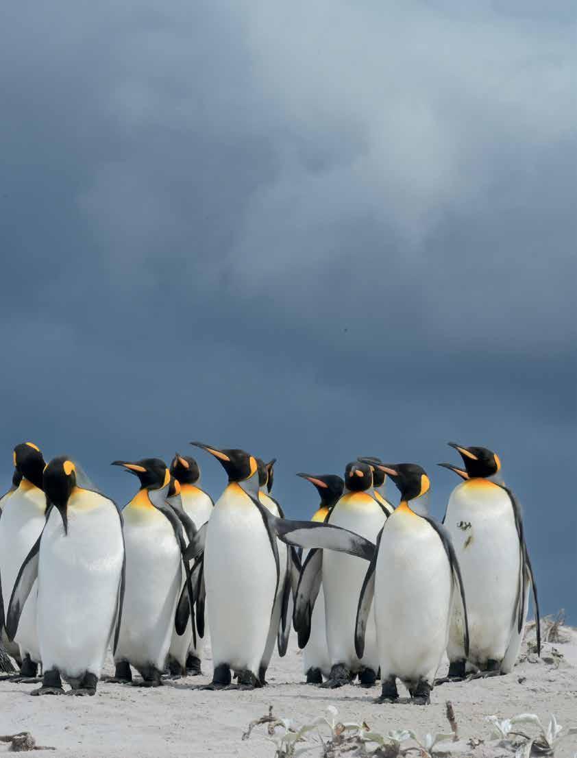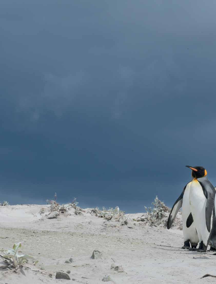El archipiélago alberga una de las colonias de pingüino rey (aptenodytes patagonicus) más grandes del mundo. DEF tuvo la oportunidad de pasar una jornada en Punta Voluntario, al noreste de la isla Soledad, y de retratar a tan majestuoso animal en su entorno natural.