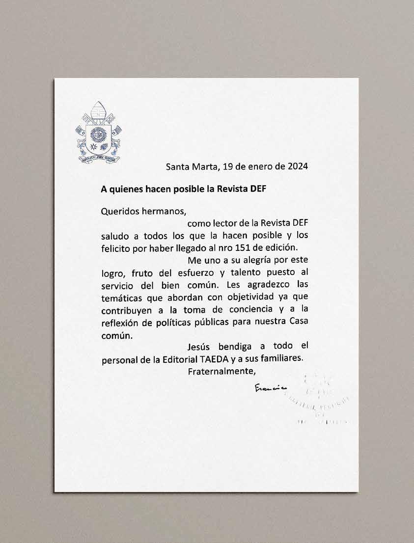 Fuimos honrados con una misiva de Su Santidad, el papa Francisco, en la que destaca la labor periodística del equipo de DEF y los temas que aborda nuestra publicación.