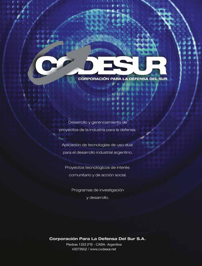 www.defonline.com.ar DEF es una publicación de TAEDA EDITORA SA. Derechos reservados. Se prohíbe su reproducción total o parcial sin autorización. Las opiniones vertidas en esta revista no representan necesariamente las de TAEDA EDITORA SA. Registro de Propiedad Intelectual N.º 476240. Piedras 1333 2.º “A”, Buenos Aires, Argentina. (5411) 4300-1186.