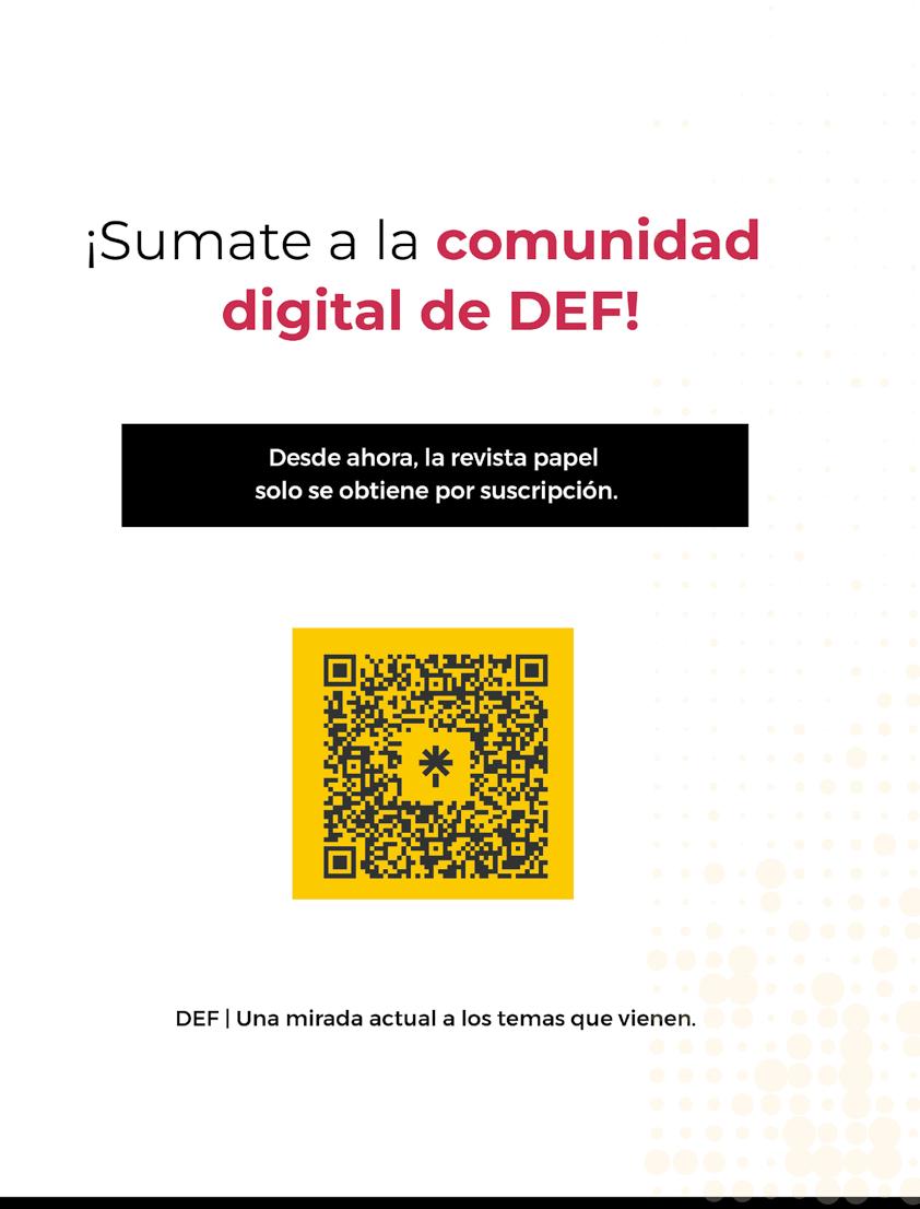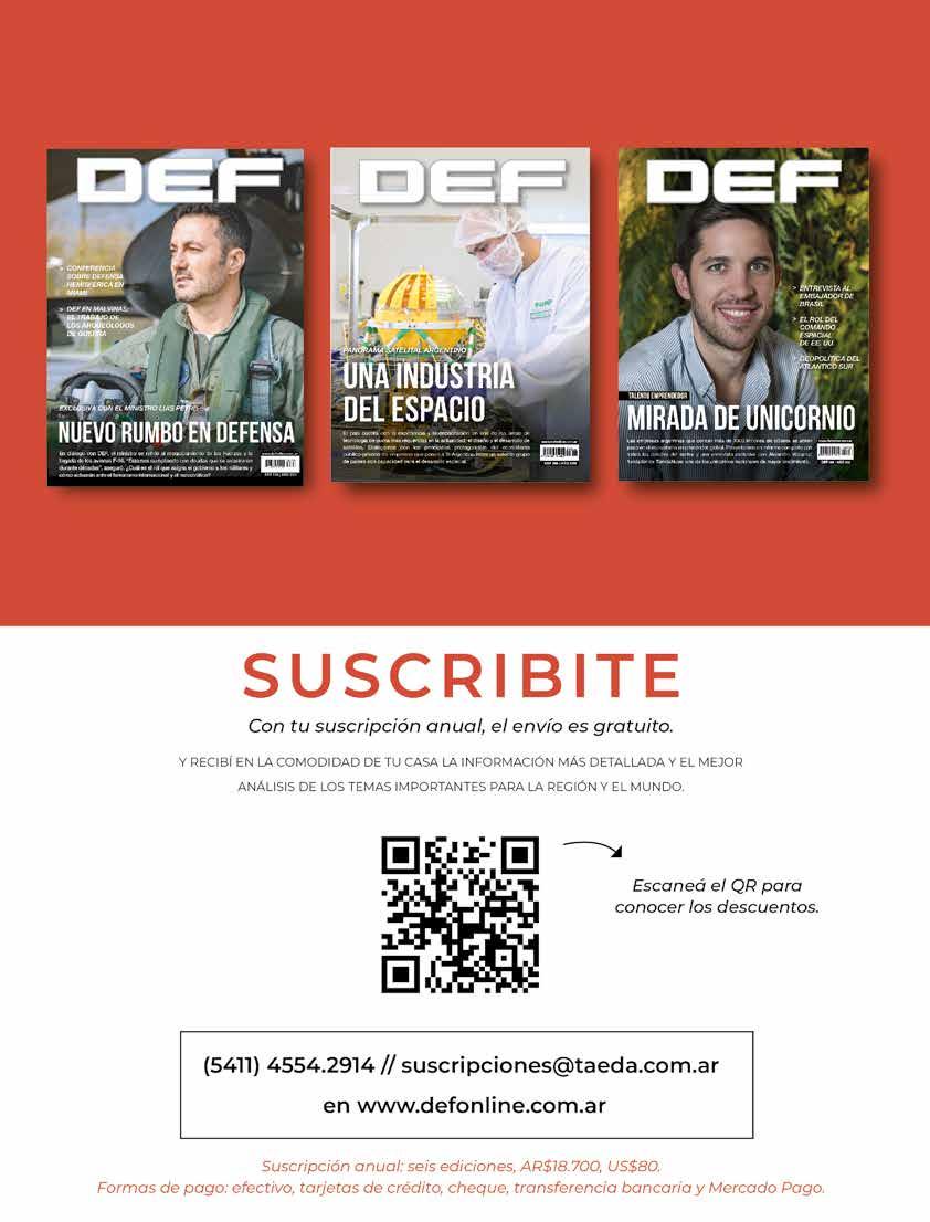 Gustavo Gorriz www.defonline.com.ar DEF es una publicación de TAEDA EDITORA SA. Derechos reservados. Se prohíbe su reproducción total o parcial sin autorización. Las opiniones vertidas en esta revista no representan necesariamente las de TAEDA EDITORA SA. Registro de Propiedad Intelectual N.º 476240. Piedras 1333 2.º “A”, Buenos Aires, Argentina. (5411) 4300-1186.
