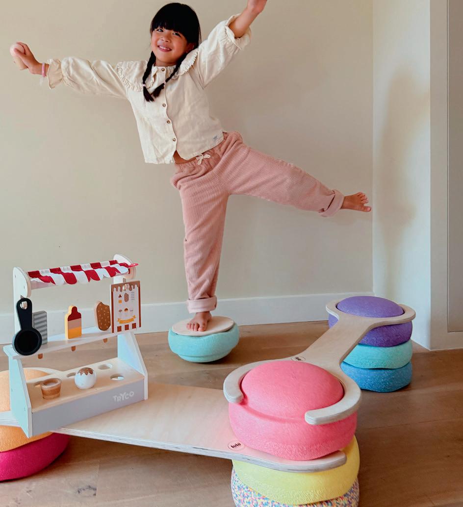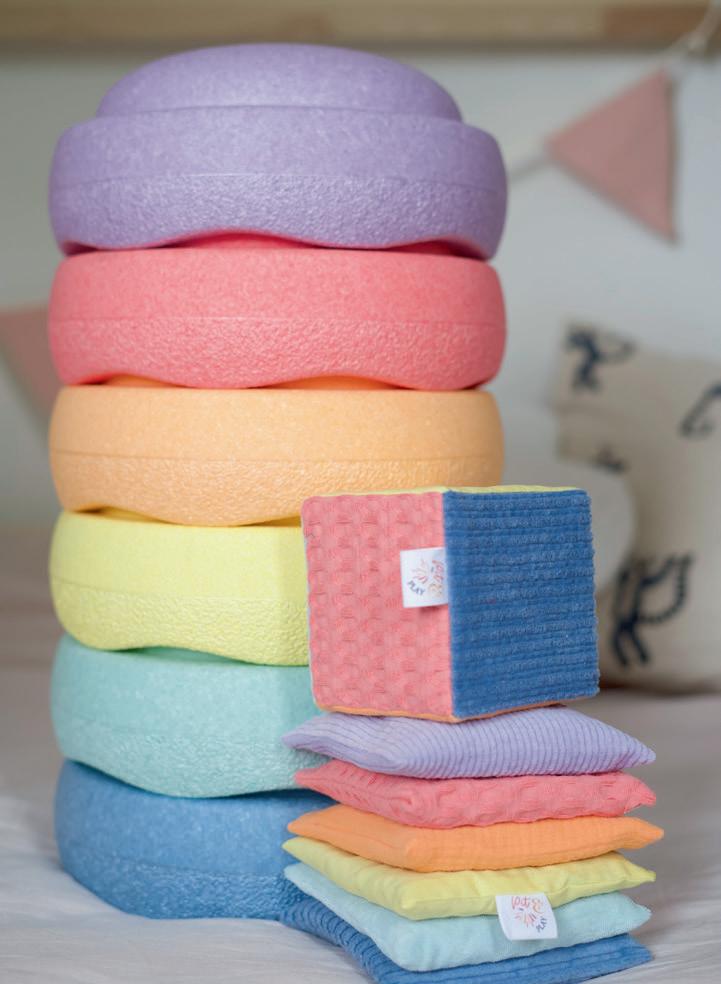 Stimuleert creativiteit en beweging. Kinderen klimmen, balanceren en stapelen met felle, vrolijke kleuren.