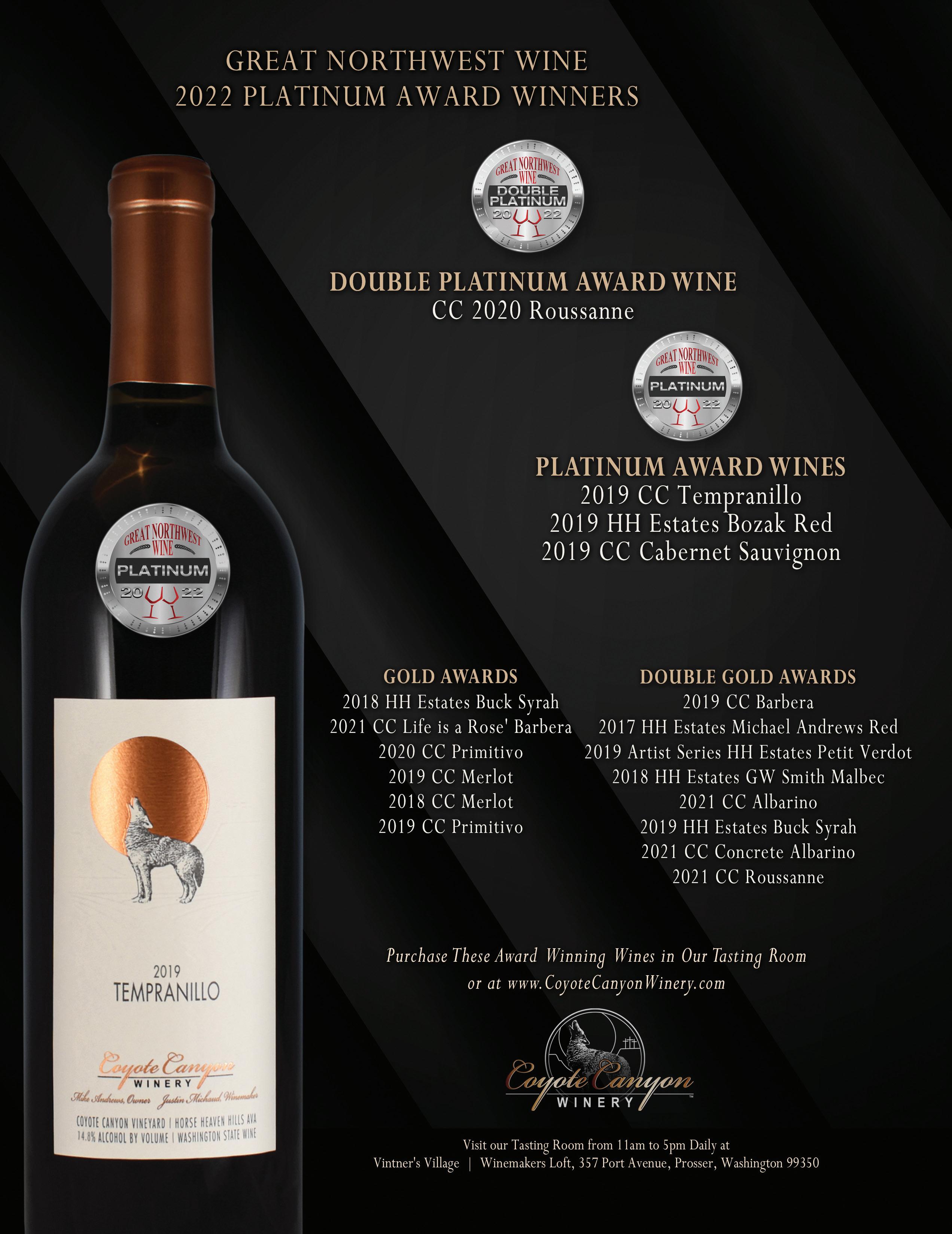 Editor’s note: Cellardoor Winery is in the state of Maine, but all of their Platinum winners have been produced with grapes from the Pacific Northwest.