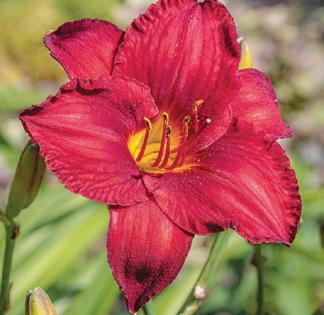 Velvety 6" ruby-red flowers with golden stamens, vigorous growth habit