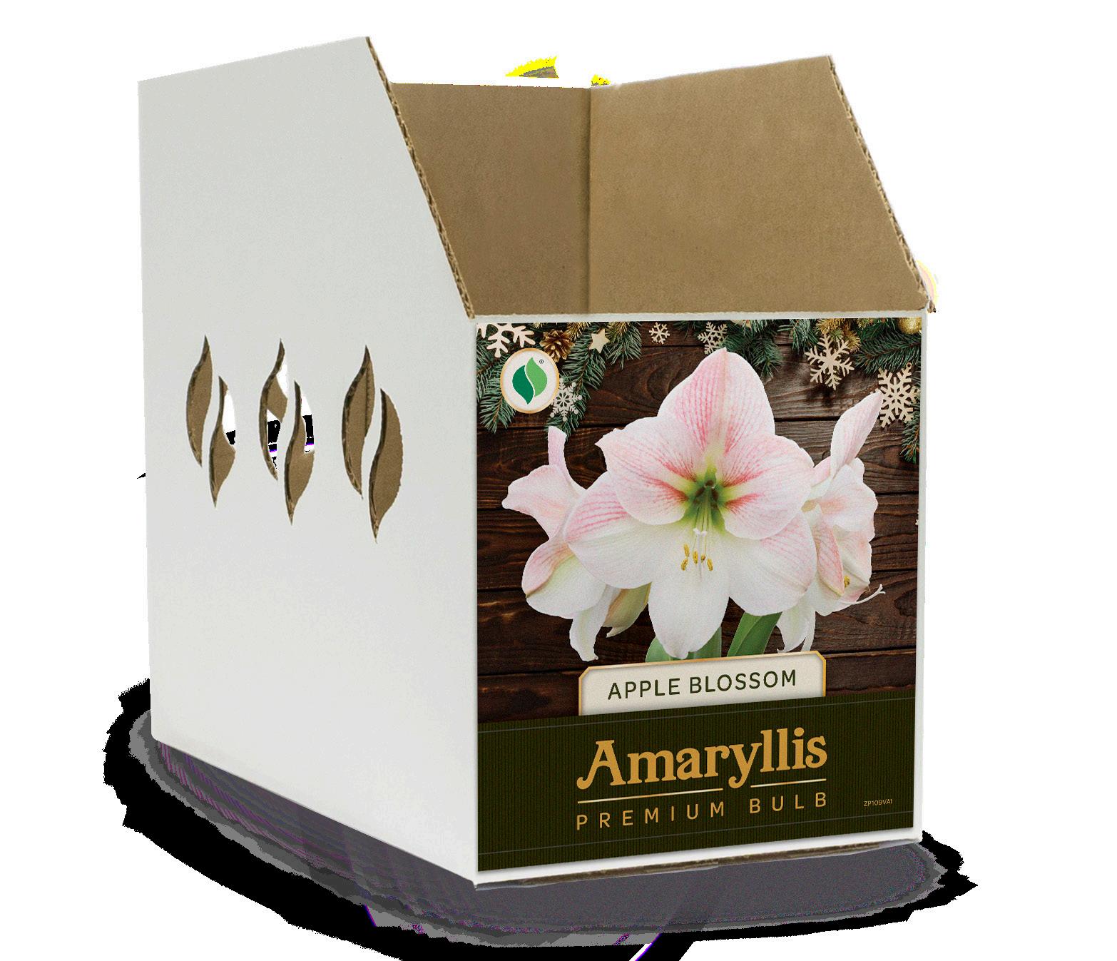 The Amaryllis Cube Display is an excellent space saving display option for holiday sales! Amaryllis gift kits make thoughtful gifts for holiday hosts,friends, family, and more! This display includes 36 gift kits including red, pink, and striped amaryllis.