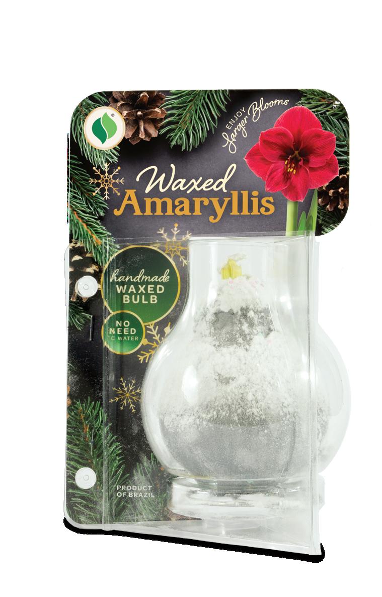 These gorgeous blooms add warmth to the home during the winter months and make excellent gifts! Each case pack includes 12 packages and is perfect for end caps. Each package includes 1 hand dipped waxed bulb (size 28-30 cm).