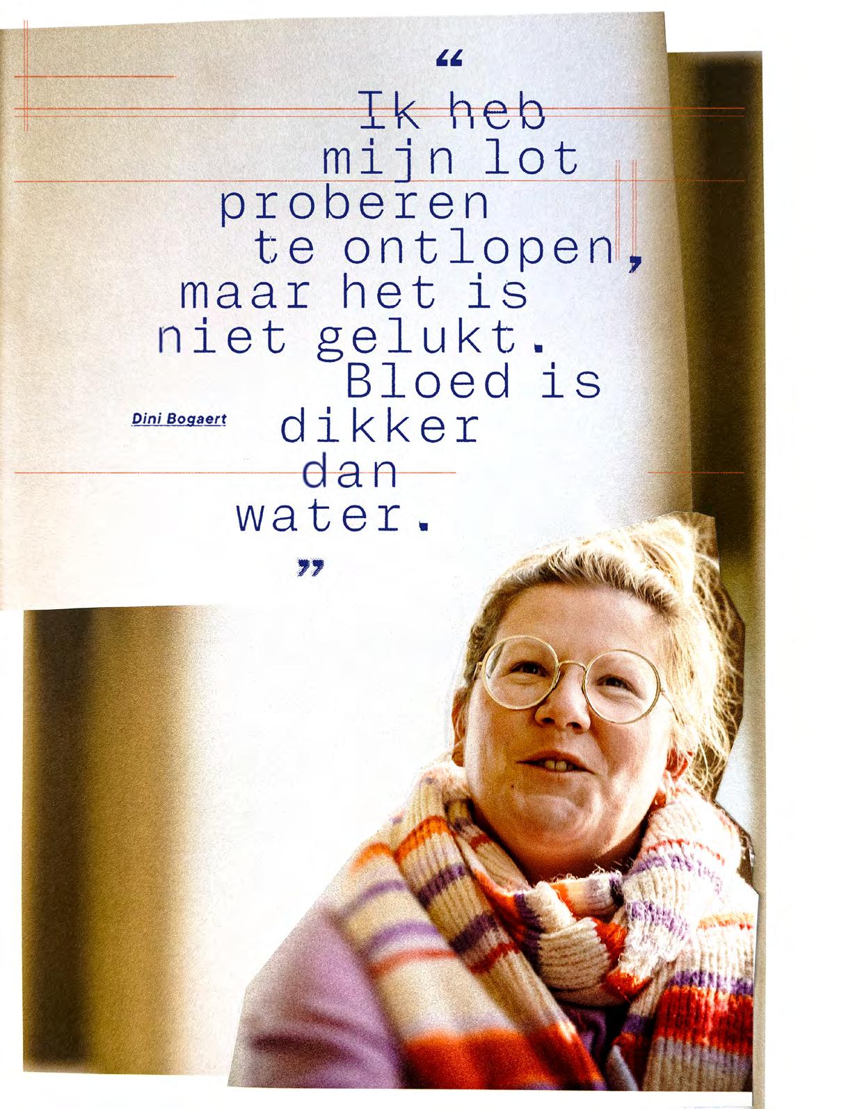 Dini “Ik heb mijn lot proberen te ontlopen, maar het is niet gelukt. Bloed is dikker dan water en je roots zitten erin, er wordt aan je getrokken en ja… Ik heb het wel geprobeerd. Ik ging rechten studeren, heb drie jaar een klerenwinkel gerund. Maar die vis en die garnalen, dat is echt ons hele leven. Mijn ouders hebben mij nooit gedwongen, trouwens. Er waren helemaal geen verplichtingen, ze zagen het me ook niet doen, een leven in de visserij. En nu zeggen ze: ‘Het was voorbestemd.’”