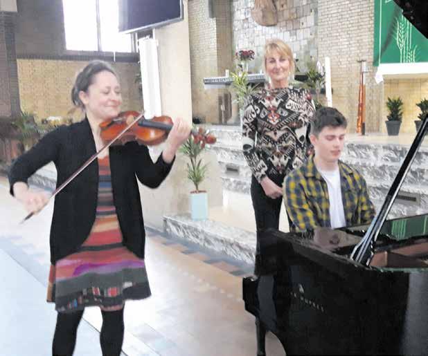 Violiste Quirine Scheffers en pianist Damiën Heemskerk tijdens hun repetitie in de monumentale Onze Lieve