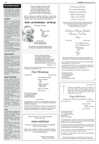 Leon en Marja Correspondentieadres: Van der Spek Uitvaart o.v.v. Familie Bolleboom Postbus 8805 3009 AV Rotterdam Er is gelegenheid tot condoleren en afscheid nemen op donderdag 5 april van 19.00 tot 20.00 uur in uitvaartcentrum Van der Spek, Berkelse Poort 33 te Berkel en Rodenrijs.
