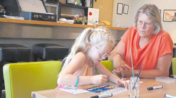 Wethouder Titia Cnossen kijkt met interesse naar hoe Faye zichzelf als zangeres tekent: “Ik heb wel iets met muziek. En met zingen en met dansen. Ik zit ook op zangles.” Foto: Arie van Driel.