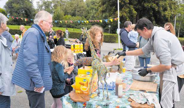 muziek georganiseerd en onder het genot van een drankje en een hamburger of Duitse worst, wordt het al snel een soort ‘familiefeestje’ en worden er herinneringen van vroeger opgehaald. “O, ben jij al zo oud inmiddels?” of: “Ik wist niet dat je al enige tijd in Huize St. Petrus woont”, hoorde je her en der. Zowel in als buiten het Tuinpaviljoen waren de stoelen bezet, want er waren toch ruim zeventig deelnemers op het buurtfeestje af gekomen en dan mag het zeker als geslaagd worden gezien.