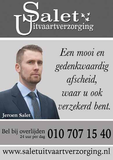 Westerplein 96 • Berkel en Rodenrijs Tel.: 010 - 519 99 51 KEURSLAGERSKOOPJE: VARKENSFILETROLLADE 500 GRAM VOOR 8.50 SAUCIJSJES 4 STUKS VOOR 5.95 VLEESWARENTRIO: GEBRADEN GEHAKT + LEVERKAAS + GRILLWORST SAMEN 300 GRAM VOOR 6.50 VLEESWARENKOOPJE: BOTERHAMWORST + ACHTERHAM 2X 100 GRAM VOOR 4.98 SALADE IDEE: EI-BACON SALADE 150 GRAM VOOR 2.75 MAALTIJD VAN DE WEEK: NASI OF BAMI MET SATÉ PER PORTIE VOOR 6.95 Voor ons assortiment, zie www.visshop.nl Westerplein 98, Berkel en Rodenrijs T: 010 - 511 29 75 www.visshopberkel.nl Ook op maandag geopend