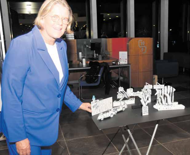 vrijdagavond 6 oktober de Overzichtstentoonstelling van Kunsttoer 2023 door te zeggen dat ze blij was dat er zoveel mensen naar het gemeentehuis waren gekomen. Even daarvoor had kunstenares Jellie Piersma de aanwezigen namens alle deelnemende kunstenaars welkom geheten. Ze spoorde de ouder(s) aan om tijdens de Kunsttoer op 7 en 8 oktober hun kind(eren) mee te nemen langs de ateliers. “Inspireer ze om een kunstwerk te maken en in te leveren voor de actie ‘Win een kunstwerk’.”