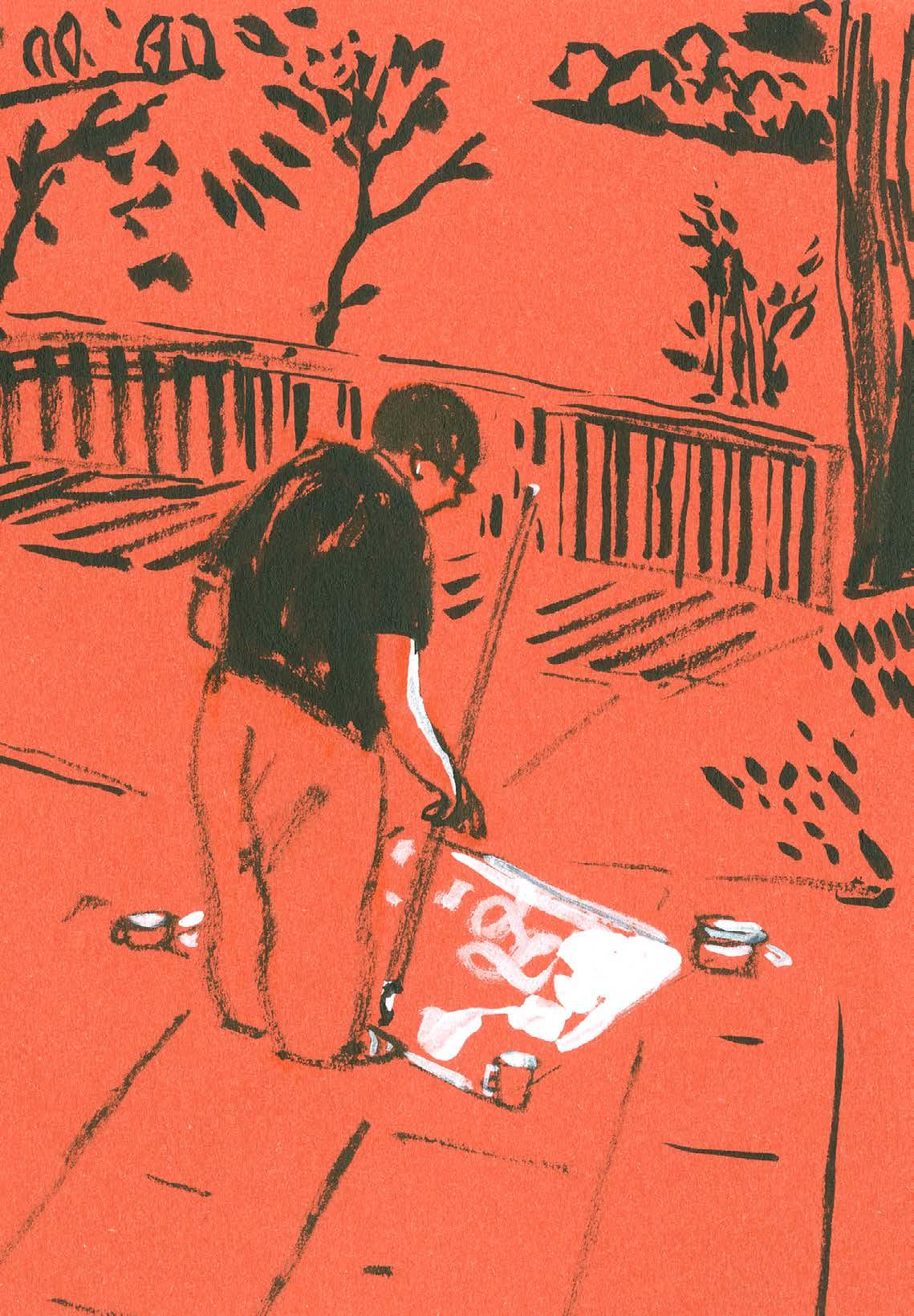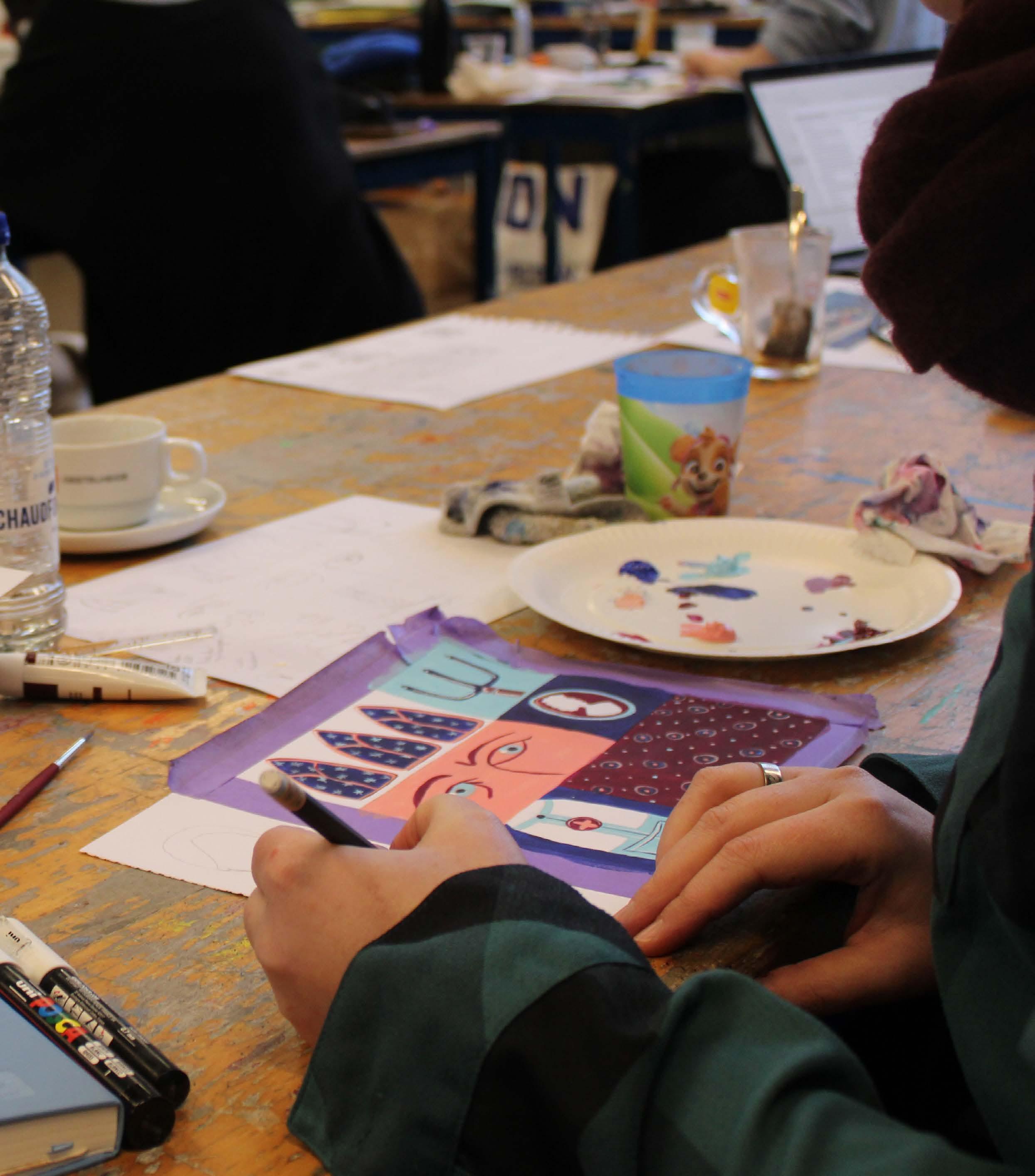 De groep kwam niet alleen samen om te experimenteren, maar ook samen te reflecteren over het kunstenaarschap. Er werd gediscussieerd over uiteenlopende thema’s, van persoonlijke vragen tot de zakelijke kant van het kunstenaarschap: Hoe overwin ik een creatieve blokkade? Hoe krijg ik mijn zelfvertrouwen, plezier en rust terug als ik twijfel aan mezelf? Hoe zorg ik ervoor dat ik mezelf niet onderwaardeer of te lage prijzen hanteer? Hoe kan ik stoppen met mezelf te vergelijken met de prestaties van anderen? Dankzij de ontmoetingen met gelijkgezinden uit andere landen werd de bubbel van de illustratoren doorbroken. Tijdens de residentie groeide het besef dat die twijfels universeel zijn en dat een hechte community je kan helpen ze een plaats te geven.