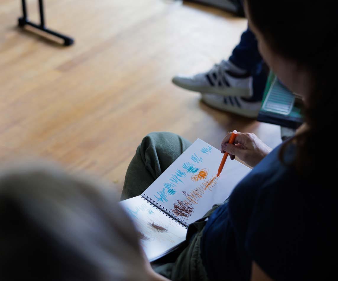 In het atelier Tekencollectief met coaches Willem Breynaert en Hallveig Agustsdottir stond samenwerking centraal. Deelnemers werkten niet alleen aan individuele tekeningen, ze maakten ook samen werk.