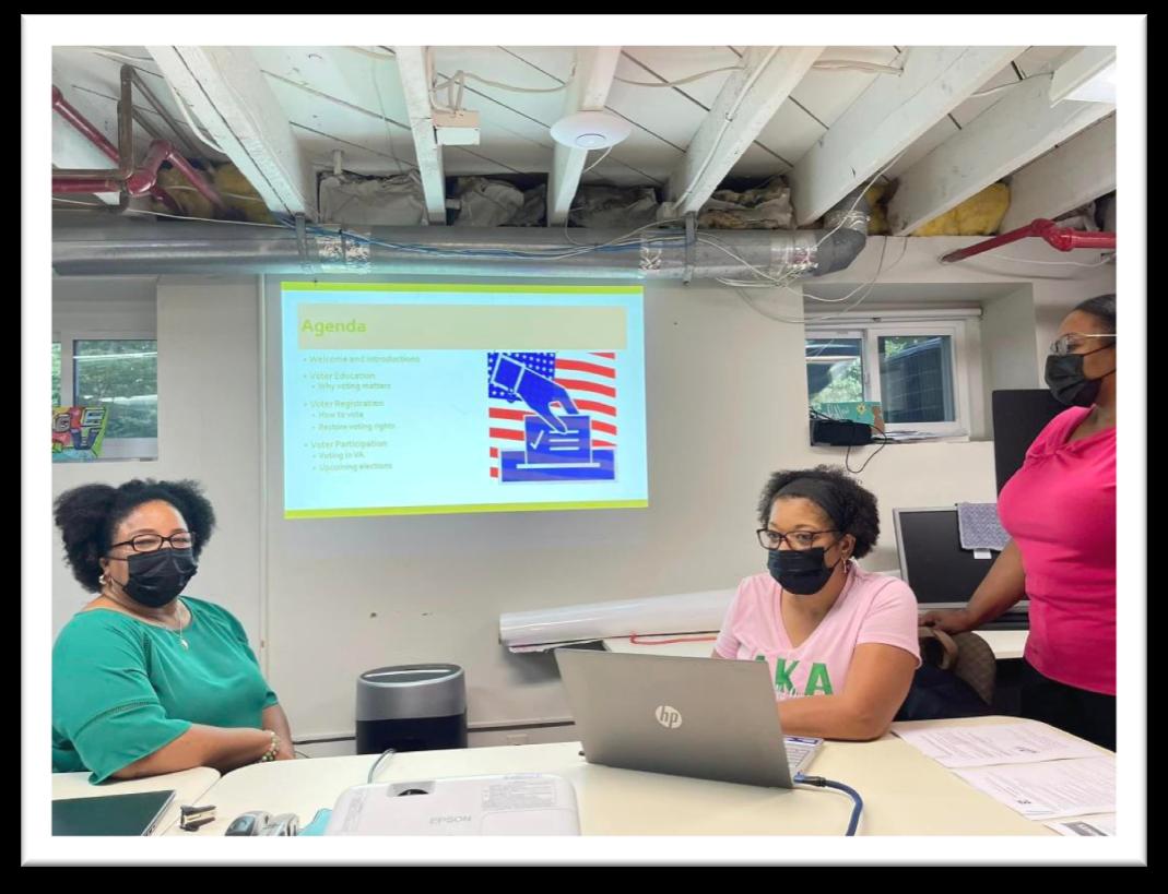Photo from Friends of the Guest House: Photos from Voter Registration Drive at the rec center: Photo of Soror Romana dropping off the completed voter registration forms: