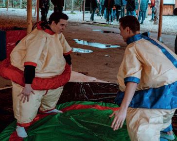 Voeg dit pakket toe voor optimaal plezier en lachwekkende momenten. Bij deze games ga je de strijd aan tegen andere teams en moet je zoveel mogelijk punten behalen om te winnen. Bewijs dat jouw team het beste is bij sumoworstelen, hoepelrokvoetbal of levend tafelvoetbal.