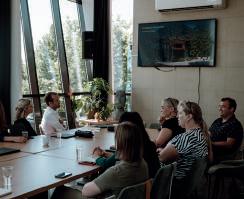 In deze ruimte speel je normaal gesproken de virtual reality game, maar hier kun je ook prima terecht om een presentatie te geven.
