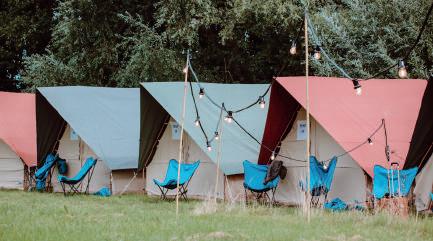 Maak je event helemaal compleet en blijf overnachten midden in de natuur op onze Glamping. De 8-persoons safaritenten zijn van alle gemakken voorzien en je bent op steenworp afstand van al het avontuur op onze locatie. Kom je met een grote groep? Dan breiden we onze glamping graag voor je uit.