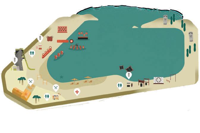 Ook dit eiland heeft een prachtig strand, maar dit is er niet zomaar een! Hier staan uitdaging en avontuur centraal. Werk samen tijdens Expeditie Robinson, laat zien wat je in huis hebt tijdens Wipeout en test je zenuwen tijdens Mission Impossible. Geniet van het bijzondere uitzicht in de hoogte, op het water en op het land, en kom samen om bijzondere momenten te vieren in