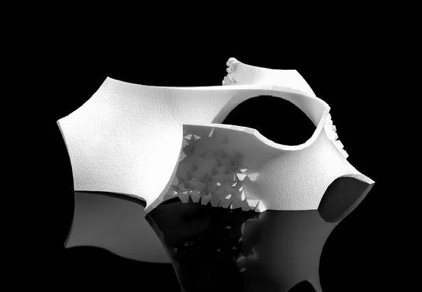 The parasitic relationship in the ocean is demonstrated by representing the barnacles growing on the surface of the whale's skin through the raised geometry on the prototype.