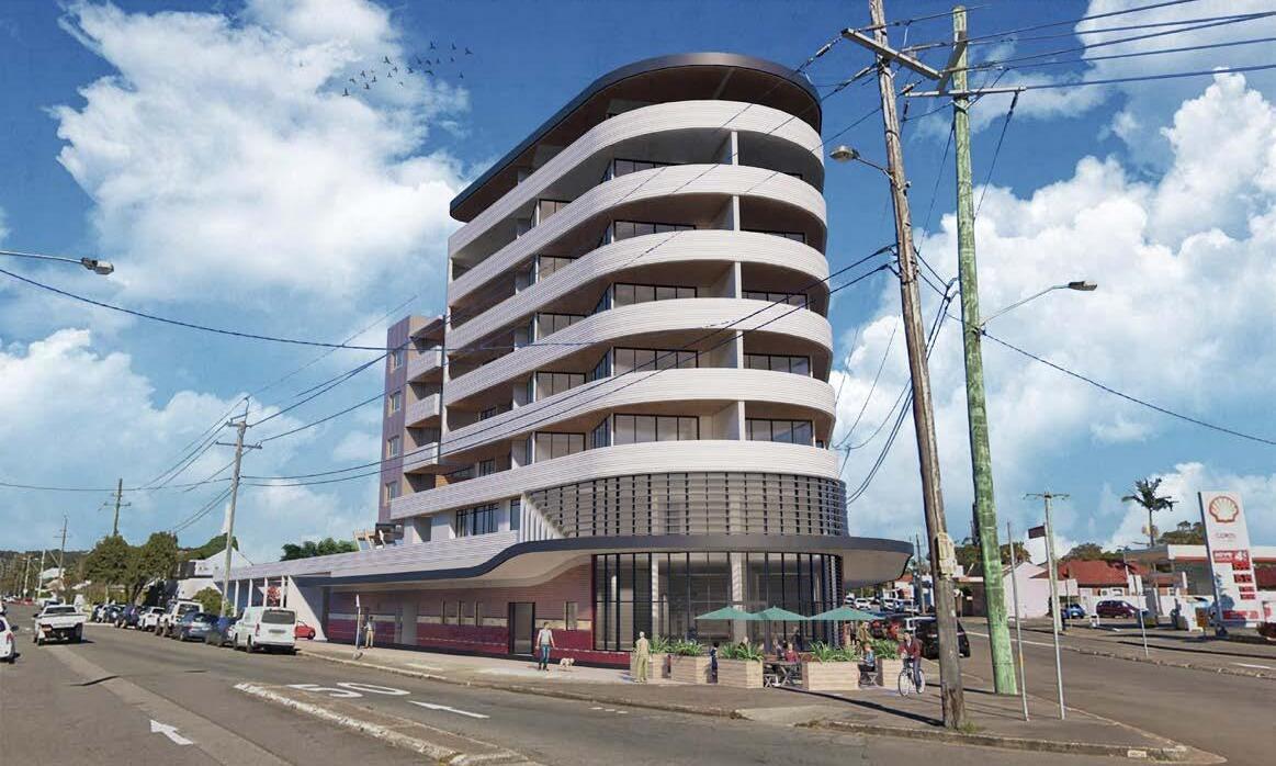 Reinstating a prominent corner element to address Nine Ways and form a gateway to Brunker Road. The corner element could be either a faithful re-construction of the original building or a modern interpretation of it, although we recommend the latter. The new building at the rear of the site forms a backdrop to the corner element, which retains the original tavern function of the building, adds hotels and residential facilities.