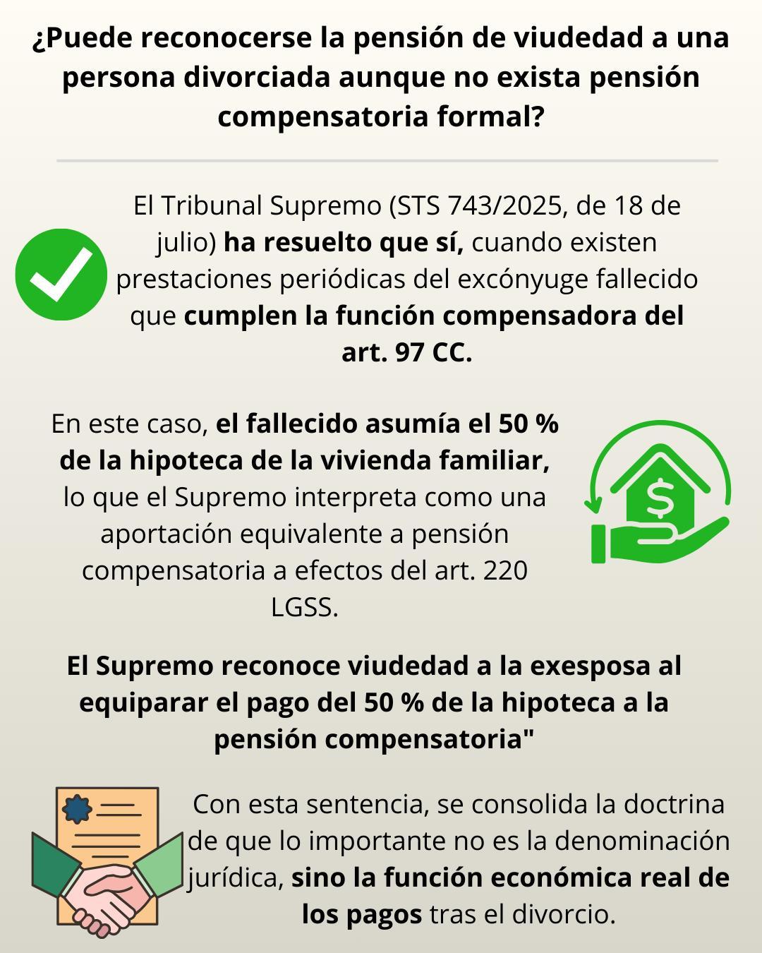 Viudedad de persona divorciada: el pago del 50 % de la hipoteca de la vivienda familiar se equipara a pensión compensatoria a efectos del art. 220 LGSS
