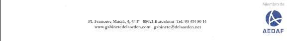 6 Pl. Francesc Macià, 4, 4art. 08021 Barcelona Tel. 93 414 50 14 www.gabinetedelaorden.net gabinete@delaorden.net