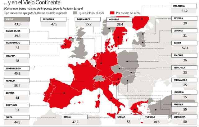 Por el contrario, los contribuyentes que deben hacer frente a una menor factura fiscal, al margen de Madrid con cuota cero, son los vizcaínos con una cifra a ingresar de 22.400 euros y los gallegos, 27.409euros.