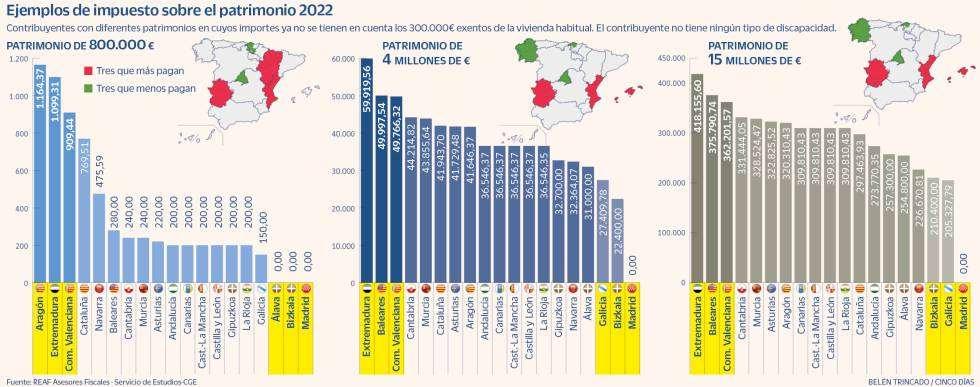 1.1. El mapa del impuesto del patrimonio: las diferencias de no pagar nada a abonar 60.000 euros de media en función de la comunidad