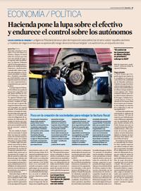 La Agencia Tributaria lanza un plan de Inspección para estrechar el cerco sobre “aquellos sectores y modelos de negocio en los que se aprecie alto riesgo de economía sumergida”. Los autónomos, en el punto de mira. Hacienda estrecha el cerco sobre el uso del dinero en efectivo y dispara el control sobre los sectores que más usan este método de pago y, en especial, sobre los autónomos. La Agencia Tributaria (AEAT) ha intensificado la vigilancia de establecimientos, empresas y profesionales, centrada sobre todo en negocios más propensos a la economía sumergida. Los abogados y fiscalistas consultados por EXPANSIÓN notan un especial control este ejercicio, con más requerimientos y comprobaciones por parte de la AEAT. El economista, 16-9-2024