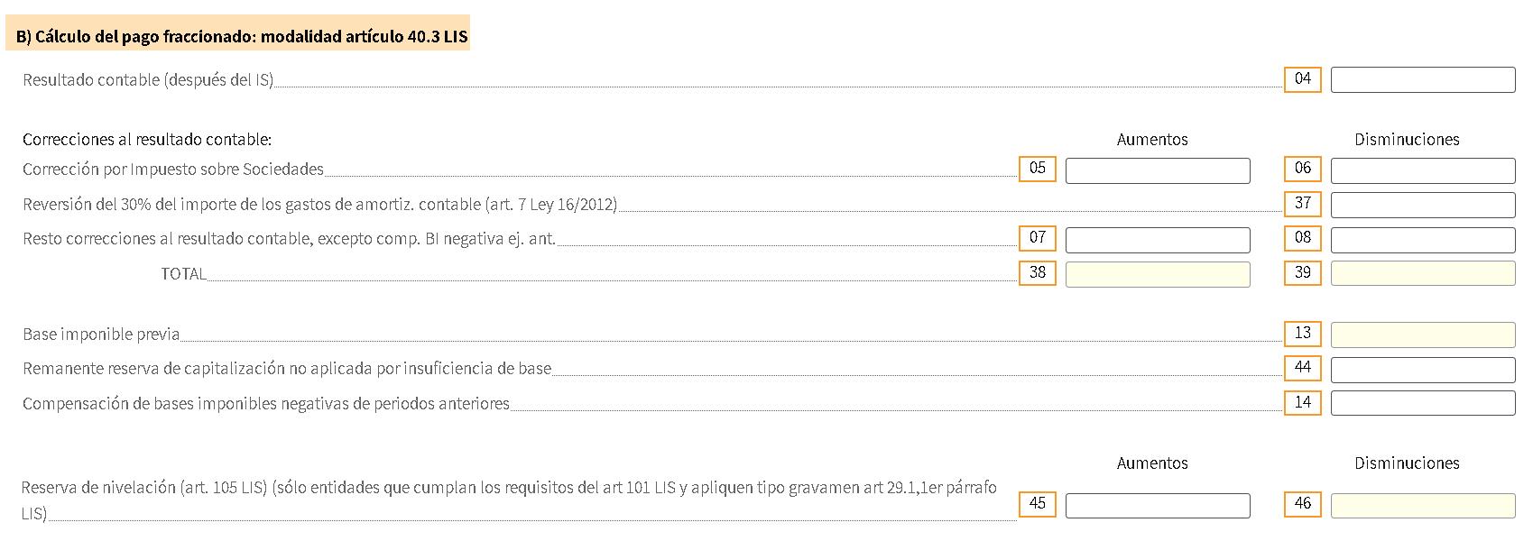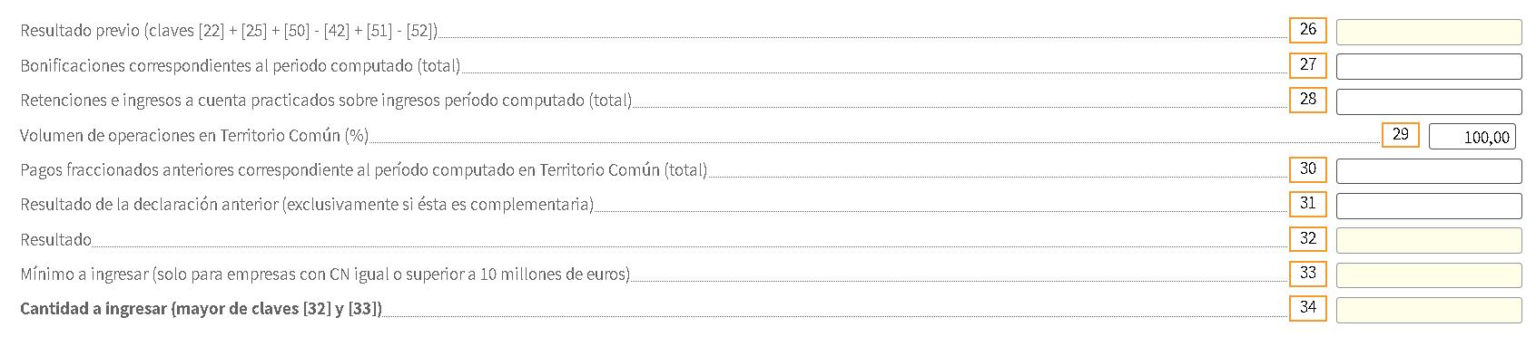 De acuerdo con la disposición adicional decimocuarta de la Ley 27/2014, de 27 de noviembre, del Impuesto sobre Sociedades, en la redacción dada por el artículo 71 de la Ley 6/2018, de 3 de julio, de Presupuestos Generales del Estado para el año 2018 y el artículo 4 de la Ley 8/2018, de 5 de noviembre, la cantidad a ingresar no podrá ser inferior, en ningún caso, al 23% ( 25% para contribuyentes a los que resulte de aplicación el tipo de gravamen previsto en el primer párrafo del apartado 6 del artículo 29 de esta Ley) del resultado positivo de la cuenta de pérdidas y ganancias del ejercicio de los 3, 9 u 11 primeros meses de cada año natural o, para contribuyentes cuyo período impositivo no coincida con el año natural, del ejercicio transcurrido desde el inicio del período impositivo hasta el día anterior al inicio de cada período de ingreso del pago fraccionado, determinado de acuerdo con el Código de Comercio y demás normativa contable de desarrollo, minorado exclusivamente en los pagos fraccionados realizados con anterioridad, correspondientes al mismo período impositivo.