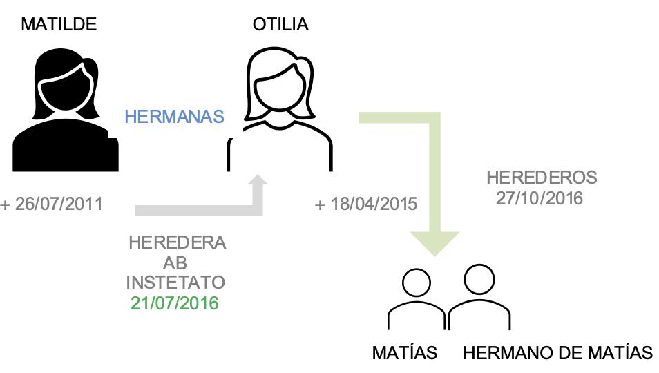 - Habiendo fallecido doña Otilia el 18/04/2015 sin aceptar la herencia de su hermana y transmitiéndose a sus sobrinos el ius delationis de la herencia de doña Matilde, el 27/10/2016seotorgóescriturapúblicademanifestaciónyaceptacióndeherencia,envirtud delacualdon Matíasysuhermano aceptaronlas herenciasdesustíasdoña Matilde y doña Otilia.