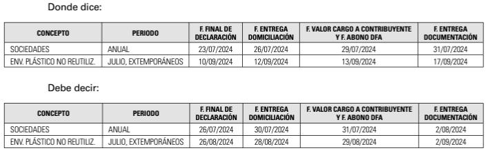 MODIFICACIÓN DEL CALENDARIO DE LOS INGRESOS FISCALES DOMICILIADOS EN EL AÑO 2024