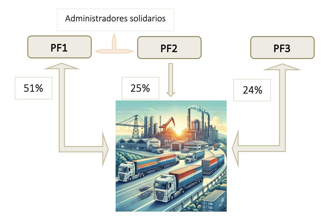 ▪ La sociedad consultante se dedica al transporte de mercancías por carretera y tiene dos administradores solidarios, PF1yPF2, que son también trabajadoresde laempresa.