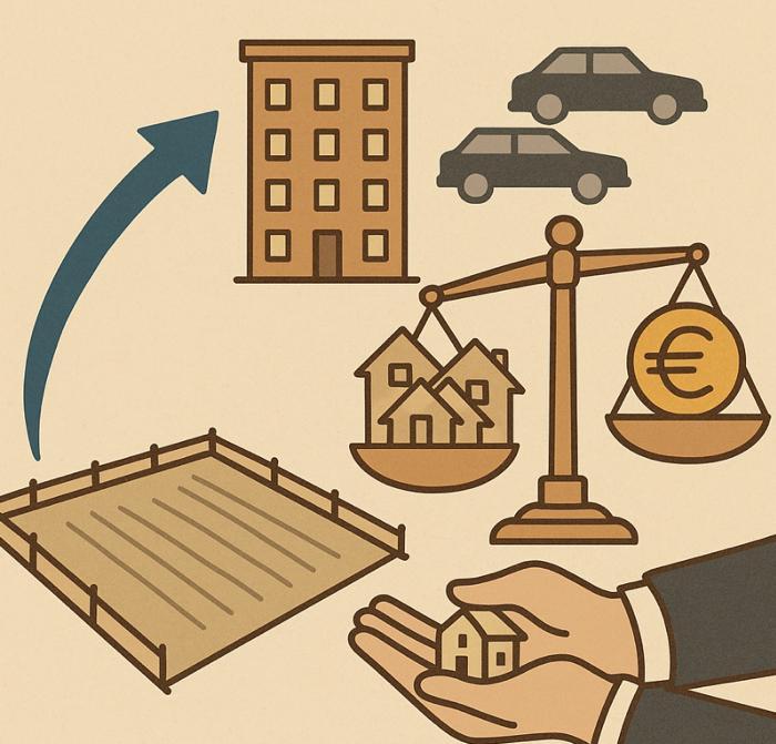 • La Administración tributaria calificó las plazas de garaje como existencias al no concurrir acreditación de su afectación prolongada a la explotación económica, mientras que el solar fue objeto de especial consideración por derivar de una permuta posterior a un proceso de fusión societaria.