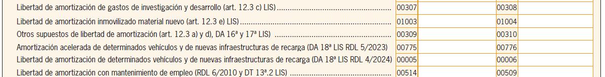 En la casilla [00309] se consignará el importe de la amortización contable no deducible de haber aplicado la libertad de amortización de la DA 17ª en el ejercicio 2023