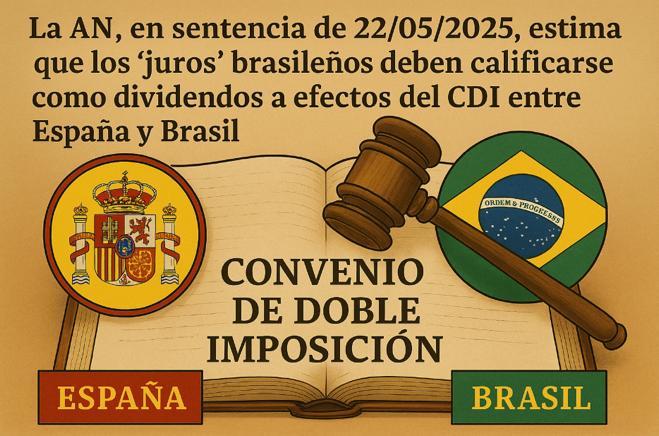 PROPIO BRASILEÑO. La AN estima que los ‘juros’ brasileños deben calificarse como dividendos a efectos del CDI entre España y Brasil, por lo que, dada la prevalencia de los convenios sobre la normativa interna, no se puede negar la exención convencional a estas rentas.