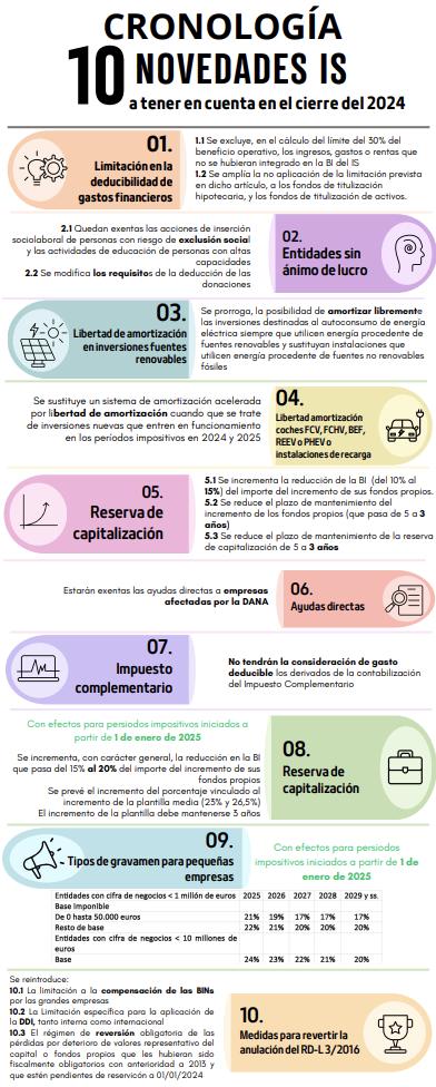 INFOGRAFÍA sobre la Cronología de novedades IS a tener en cuenta cierre 2024